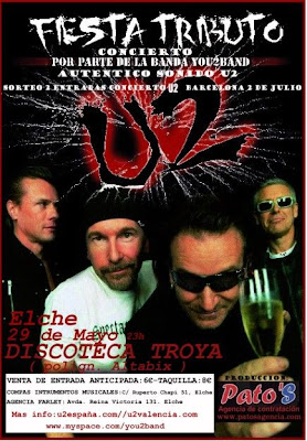 U2Valencia.com // U2España.com colabora en la Fiesta Tributo a U2 con You2band que tendrá lugar el próximo viernes 29 de Mayo en la Discoteca Troya en Elche (Alicante).